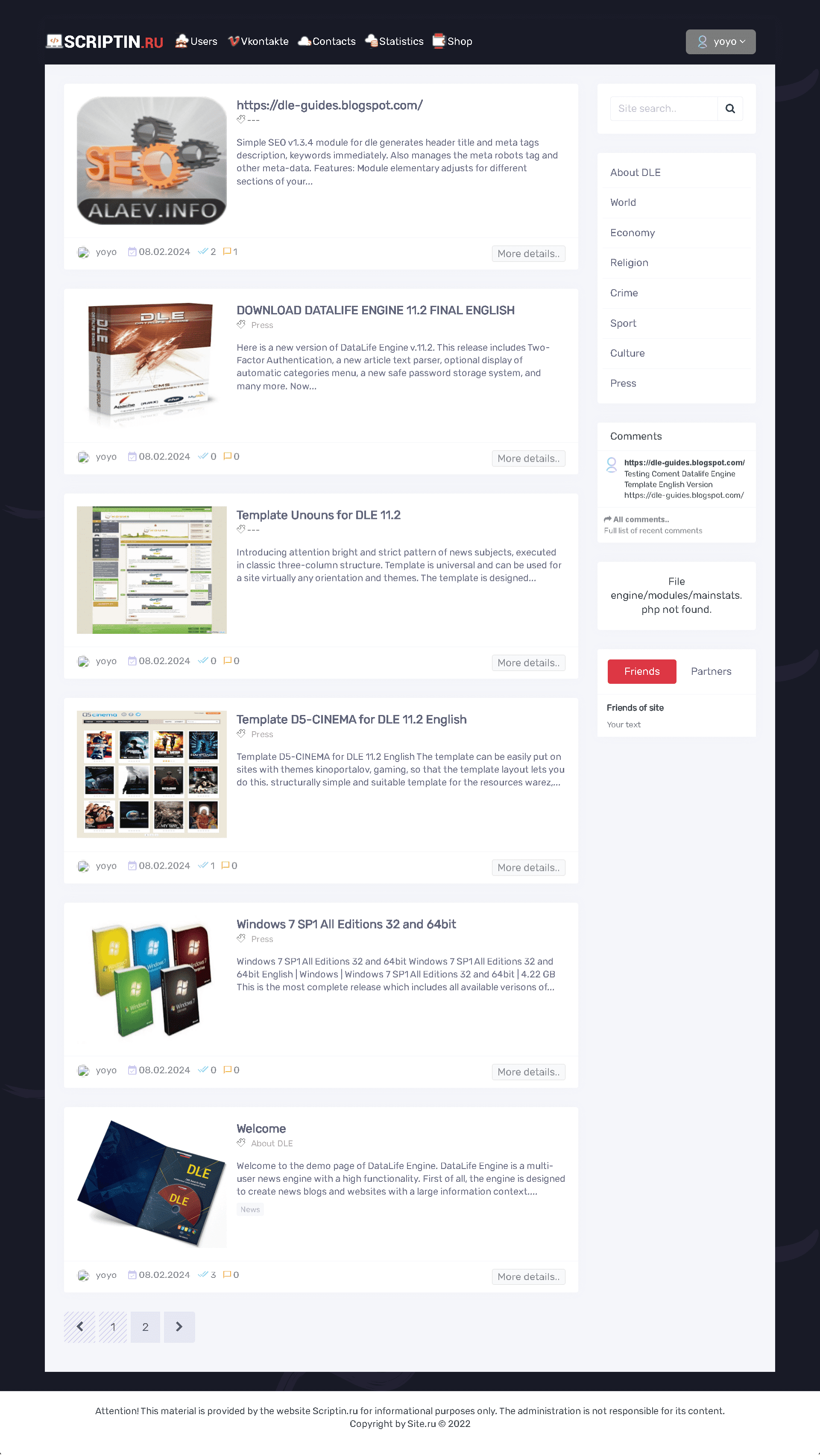 The top menu and structure of the template are designed in such a way as to provide easy navigation and quick access to sections and categories of news. The top horizontal menu with a login panel makes it easy to navigate through pages, and the right column gives access to search capabilities and the latest comments.